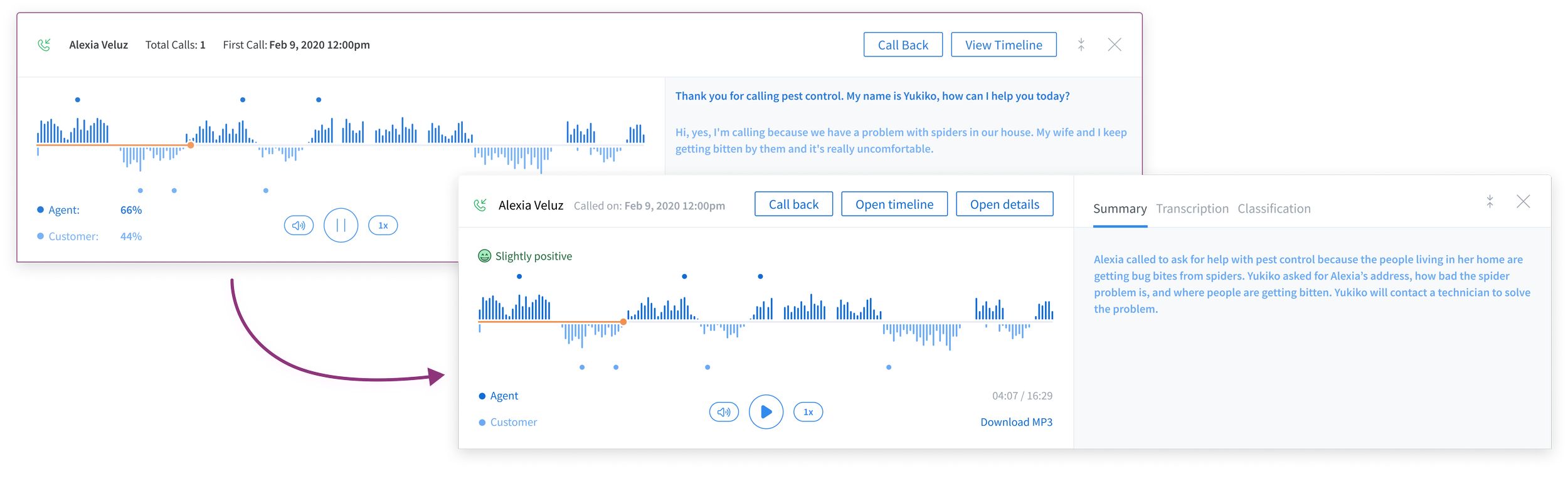 Combining advanced sentiment filtering and accurate call summarization gave our customers the tools they needed to more efficiently address increasing call volume.